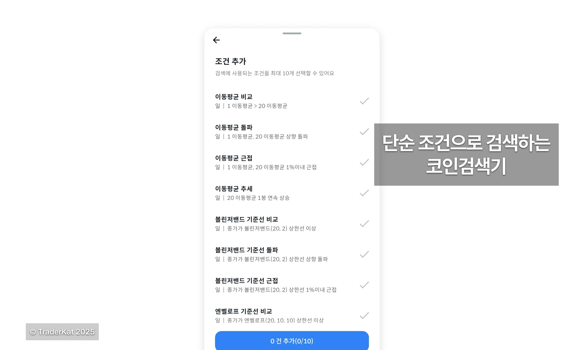 트레이더캣: 여러 보조지표 조합으로 필터링할 수 있음