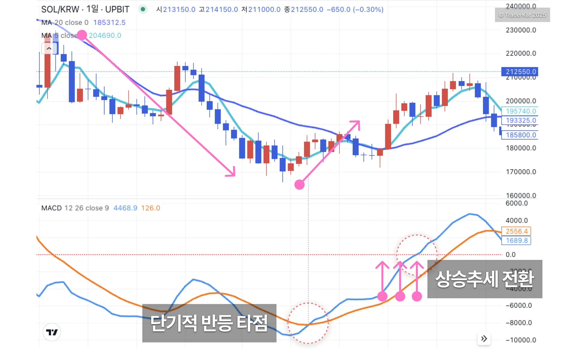 MACD는 상승·하락 전환 시점을 자동으로 감지하기에 적합한 보조지표 중 하나예요.