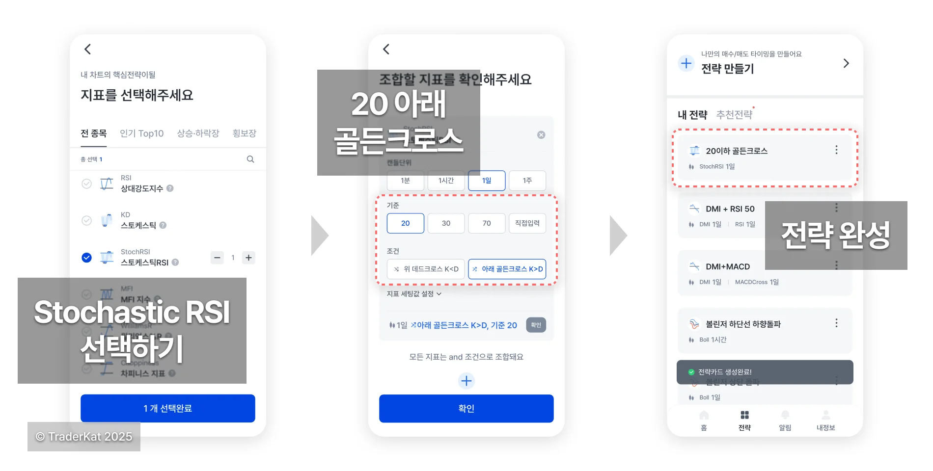 ✅ 2. 트레이더캣에서 설정 가능한 스토캐스틱RSI 조건